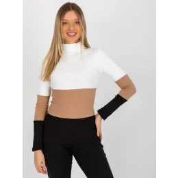 Ecru-černá vypasovaná základní halenka s žebrovaným rolákem .
