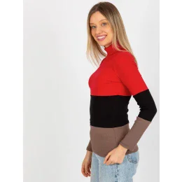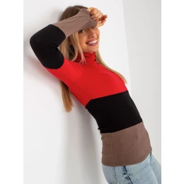 Červeno-hnědá základní halenka s žebrovaným rolákem .