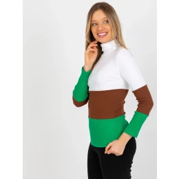 Ecru-zelená vypasovaná základní halenka s žebrovaným rolákem .