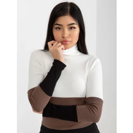 Ecru-černá žebrovaná halenka s rolákem od RUE PARIS .