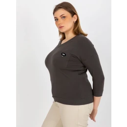 Khaki hladká plus size halenka s výstřihem do V .