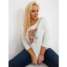Halenka v barvě ecru plus size s potiskem a 3/4 rukávy .