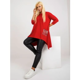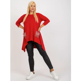 Červená dlouhá plus size halenka s 3/4 rukávy .