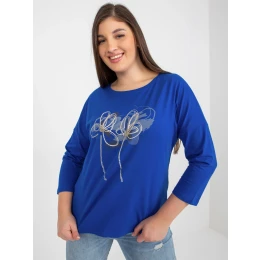 Tmavě modrá plus size halenka s potiskem a kamínky .