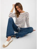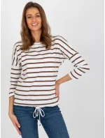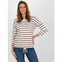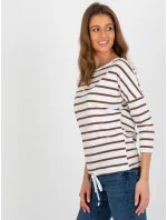 Ecru-hnědá pruhovaná halenka s 3/4 rukávy BASIC FEEL GOOD .