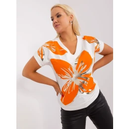 Ecru-oranžová plus size halenka s žebrovanými manžetami.