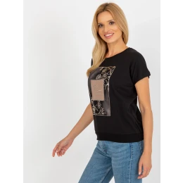 Černá bavlněná halenka s potiskem RUE PARIS .