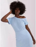 Světle modrá základní halenka s krátkým rukávem .