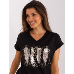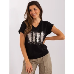 Černá halenka s potiskem a výstřihem do V značky RUE PARIS .