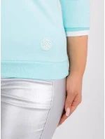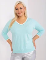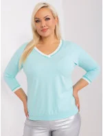 Mátová hladká halenka plus size s žebrovanými manžetami .