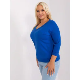 Kobaltová plus size základní halenka s žebrovaným lemem.