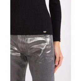 Černá žebrovaná halenka s dlouhým rukávem a výstřihem do V .
