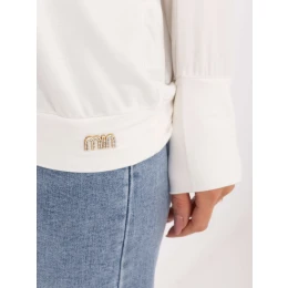 Rozměry halenky v jedné velikosti měřené na plocho: šířka v podpaží - 70 cm, celková délka - 66 cm, šířka v bocích - 48 cm, délka rukávu - 69 cm.