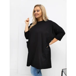 Modelka má na sobě velikost one Rozměry modelky: výška 167 cm, poprsí 118 cm, pas 90 cm, boky 118 cm.