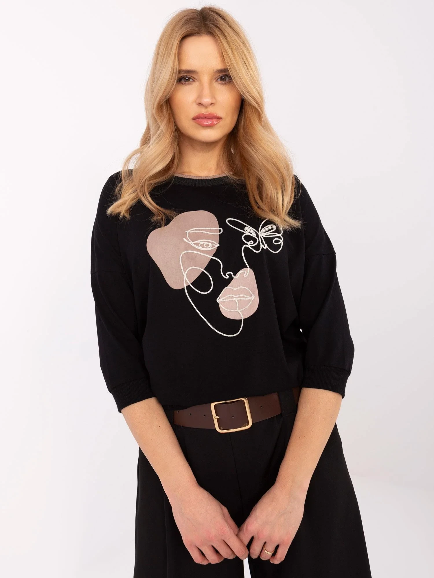 Rozměry halenky v jedné velikosti měřené naplocho: šířka v podpaží - 62 cm, délka rukávu - 26 cm (od švu), celková délka - 59 cm, šířka v bocích - 46 cm (naplocho).