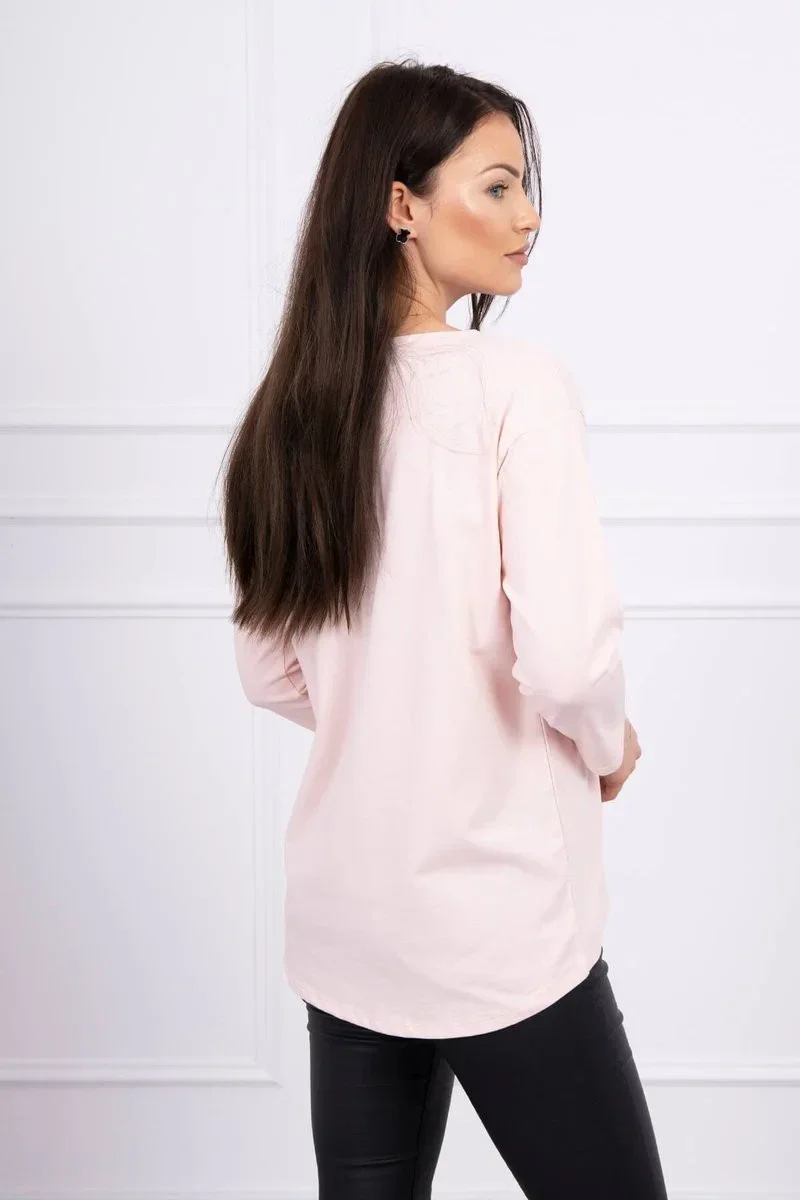 Halenka s 3D grafikou, krajková, pudrově růžová