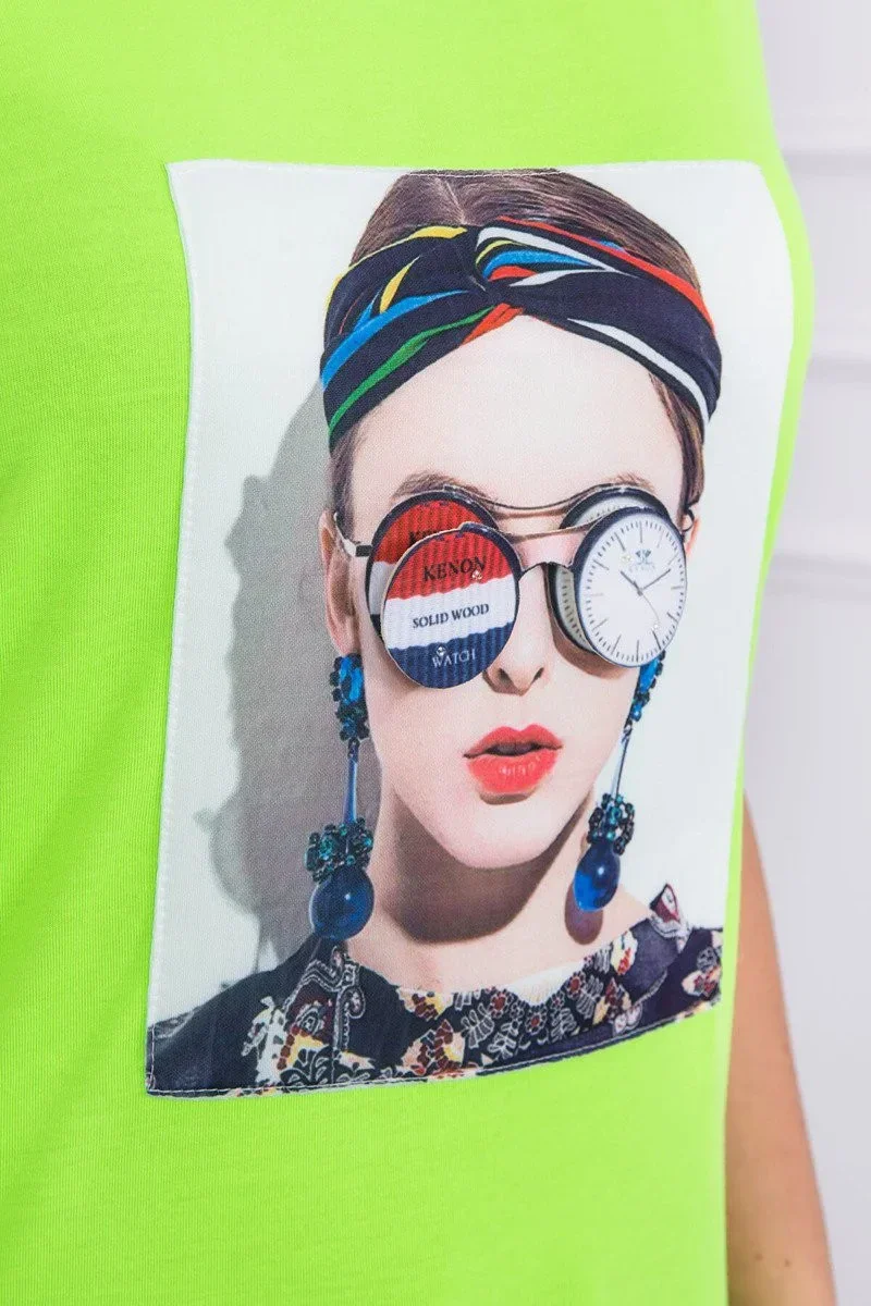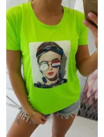 Halenka s dámskou grafickou zelenou neonovou barvou