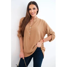 Objevte mimořádnou eleganci a pohodlí v prezentované halence s delšími zády, knoflíkovým výstřihem a ohrnutými rukávy, tato halenka nejen vypadá výjimečně stylově, ale poskytuje také bezkonkurenční funkčnost. Ciťte se sebevědomě a elegantně v halence, která podtrhne váš jedinečný styl. Díky delším zadním dílům vytvoříte jemné a módně nepravidelné proporce a knoflíkový výstřih vám umožní upravit si halenku podle vašich preferencí. Vyhrnuté rukávy dodávají halence lehkost a ležérní charakter, ideální pro různé příležitosti. Ať už se jedná o obchodní jednání nebo relaxační kávu s přáteli, naše halenka vám poskytne pohodlí a styl v jednom. Nenechte si ujít příležitost přidat do svého šatníku tuto jedinečnou halenku! Objevte eleganci, pohodlí a funkčnost v jednom a zdůrazněte svůj jedinečný styl ještě dnes. Velikost je univerzální a bude vhodná pro ženy, které nosí velikost S, M nebo L.