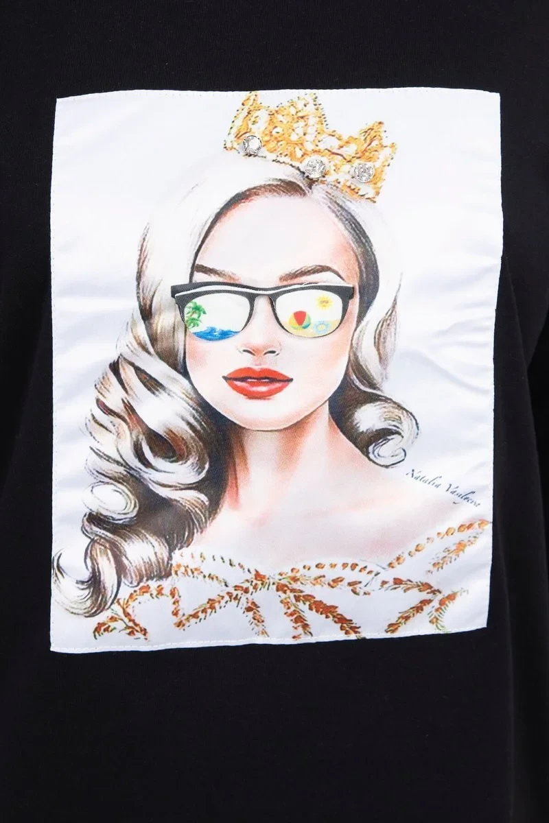 Halenka s grafikou dívky ve 3D brýlích černá