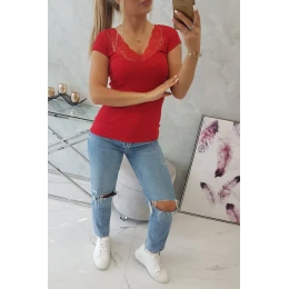 Halenka s krajkovým výstřihem červená