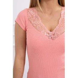 Halenka s krajkovým výstřihem meruňková