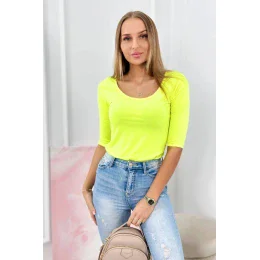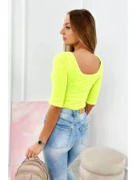 Halenka s kulatým výstřihem žlutá neonová
