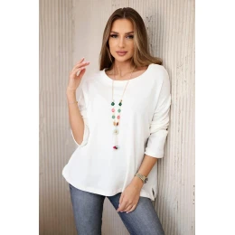 Halenka s náhrdelníkem je návrh, který spojuje jednoduchost s nádechem rafinovaného stylu. Vyrobená z vysoce kvalitního materiálu, zajišťuje pohodlí při nošení a dokonalé přizpůsobení postavě. Její klasický střih z ní dělá ideální volbu jak pro každodenní nošení, tak i pro formálnější příležitosti. Výrazným prvkem této halenky je náhrdelník, který dodává celkovému vzhledu jemnou eleganci. Díky němu je stylizace kompletní a nevyžaduje další doplňky. Jedná se o praktické řešení pro ženy, které si cení minimalistický styl s výrazným akcentem. Halenka se skvěle hodí k nohavicím i sukním a vytváří univerzální stylizace pro každé roční období. Vyberte si ji, pokud vám záleží na spojení pohodlí, elegance a originálního designu. Velikost je univerzální a hodí se pro ženy nosící velikosti S, M, L.