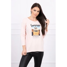 Halenka s potiskem Letní auto pudrově růžové