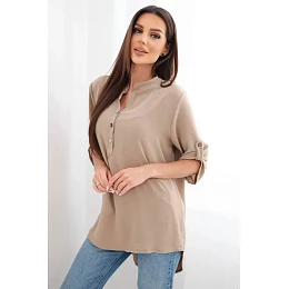 Objevte mimořádnou eleganci a pohodlí v prezentované halence s delšími zády, knoflíkovým výstřihem a ohrnutými rukávy, tato halenka nejen vypadá výjimečně stylově, ale poskytuje také bezkonkurenční funkčnost. Ciťte se sebevědomě a elegantně v halence, která podtrhne váš jedinečný styl. Díky delším zadním dílům vytvoříte jemné a módně nepravidelné proporce a knoflíkový výstřih vám umožní upravit si halenku podle vašich preferencí. Vyhrnuté rukávy dodávají halence lehkost a ležérní charakter, ideální pro různé příležitosti. Ať už se jedná o obchodní jednání nebo relaxační kávu s přáteli, naše halenka vám poskytne pohodlí a styl v jednom. Nenechte si ujít příležitost přidat do svého šatníku tuto jedinečnou halenku! Objevte eleganci, pohodlí a funkčnost v jednom a zdůrazněte svůj jedinečný styl ještě dnes. Velikost je univerzální a bude vhodná pro ženy, které nosí velikost S, M nebo L.