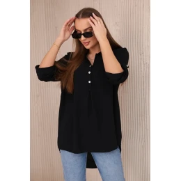 Objevte mimořádnou eleganci a pohodlí v prezentované halence s delšími zády, knoflíkovým výstřihem a ohrnutými rukávy, tato halenka nejen vypadá výjimečně stylově, ale poskytuje také bezkonkurenční funkčnost. Ciťte se sebevědomě a elegantně v halence, která podtrhne váš jedinečný styl. Díky delším zadním dílům vytvoříte jemné a módně nepravidelné proporce a knoflíkový výstřih vám umožní upravit si halenku podle vašich preferencí. Vyhrnuté rukávy dodávají halence lehkost a ležérní charakter, ideální pro různé příležitosti. Ať už se jedná o obchodní jednání nebo relaxační kávu s přáteli, naše halenka vám poskytne pohodlí a styl v jednom. Nenechte si ujít příležitost přidat do svého šatníku tuto jedinečnou halenku! Objevte eleganci, pohodlí a funkčnost v jednom a zdůrazněte svůj jedinečný styl ještě dnes. Velikost je univerzální a bude vhodná pro ženy, které nosí velikost S, M nebo L.