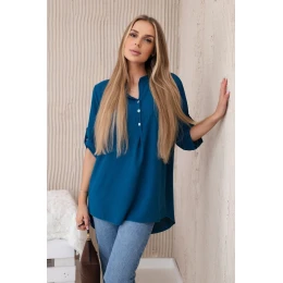 Objevte mimořádnou eleganci a pohodlí v prezentované halence s delšími zády, knoflíkovým výstřihem a ohrnutými rukávy, tato halenka nejen vypadá výjimečně stylově, ale poskytuje také bezkonkurenční funkčnost. Ciťte se sebevědomě a elegantně v halence, která podtrhne váš jedinečný styl. Díky delším zadním dílům vytvoříte jemné a módně nepravidelné proporce a knoflíkový výstřih vám umožní upravit si halenku podle vašich preferencí. Vyhrnuté rukávy dodávají halence lehkost a ležérní charakter, ideální pro různé příležitosti. Ať už se jedná o obchodní jednání nebo relaxační kávu s přáteli, naše halenka vám poskytne pohodlí a styl v jednom. Nenechte si ujít příležitost přidat do svého šatníku tuto jedinečnou halenku! Objevte eleganci, pohodlí a funkčnost v jednom a zdůrazněte svůj jedinečný styl ještě dnes. Velikost je univerzální a bude vhodná pro ženy, které nosí velikost S, M nebo L.
