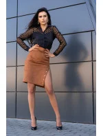 Krásná černá halenka s drobnými bílými puntíky a půvabnou stuhou pod krkem. Verze bez rukávů, zde zakončená mini volánkem. Složení: 95% polyester, 5% elastan.