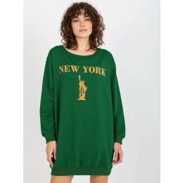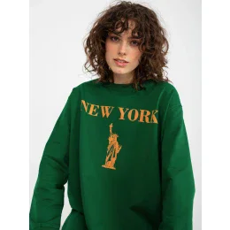 Tmavě zelená a oranžová dlouhá oversize mikina s nápisy .
