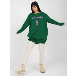 Tmavě zelená a fialová dlouhá mikina s nadměrnými nápisy .