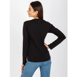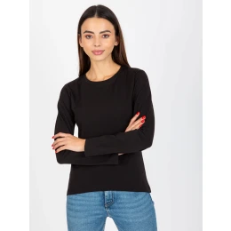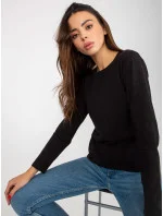 Černá hladká halenka s dlouhým rukávem a kulatým výstřihem .