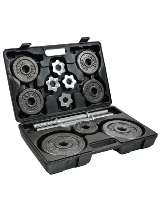 - Sada obsahuje: litinový kufřík na činky z vysoce kvalitních materiálů.