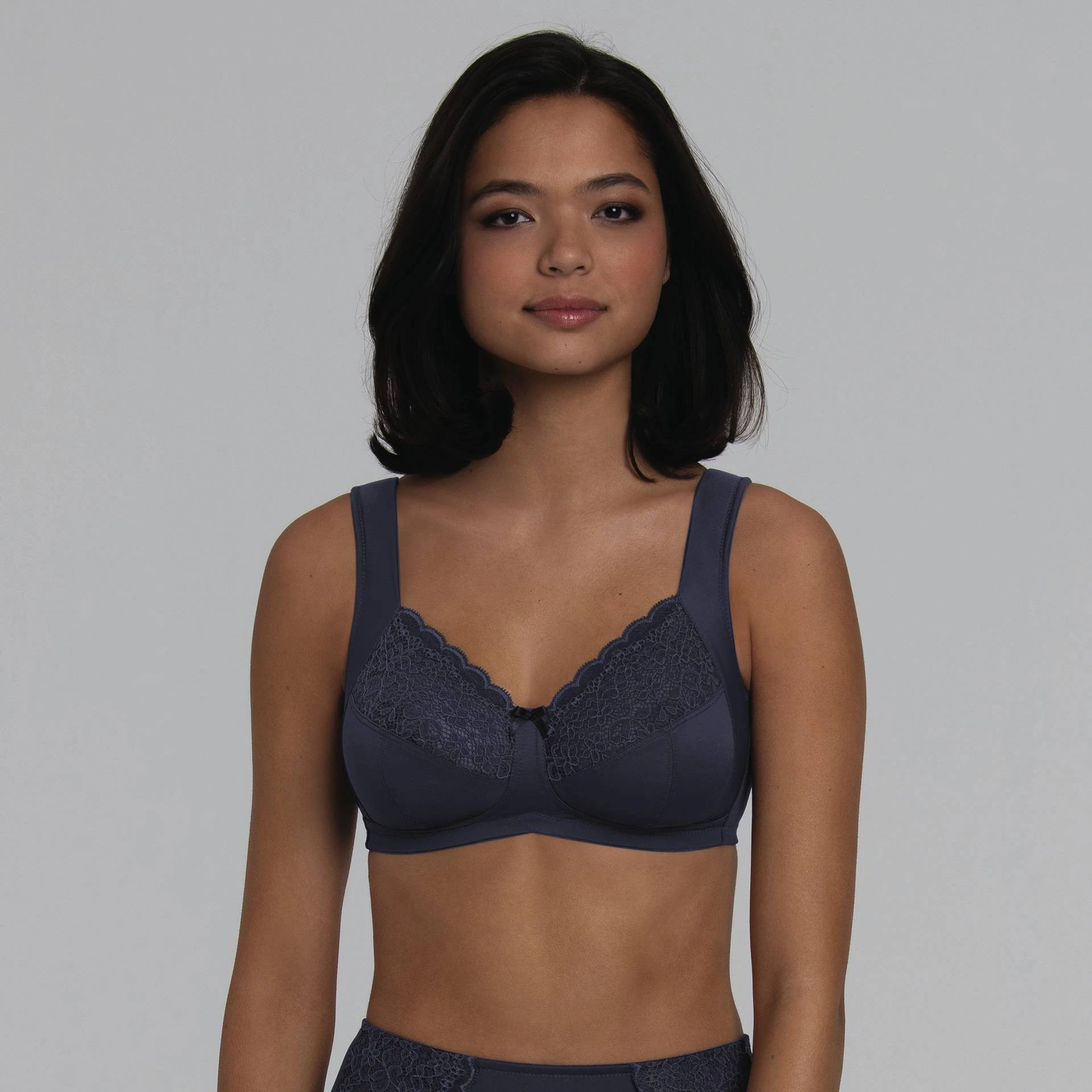 Pohodlná, měkká podprsenka bez kostic značky Anita, určená pro ženy s velkými prsy. Vyrobená z květinové, elastické krajky podšité elastickým tylem a příjemného mikrovlákna.