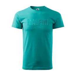 tubulární střih úzký lem průkrčníku z žebrového úpletu 1:1 s 5 % elastanu zpevňující páska od ramene k rameni silikonová úprava nápis „MALFINI EST. 1999“ vyrobený technologií hot stamping na prsou