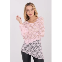Elegantní krajková blůza s rafinovaným a ženským charakterem, ideální na návštěvy, večírky, stejně jako na každodenní stylizace nebo do práce. Model se vyznačuje různorodou fakturou materiálu, která dodává jemnou eleganci a efektní vzhled. Blůza je vyrobena z kombinace polyamidu a elastanu, co zajišťuje pružnost, přizpůsobení postavě a pohodlí při nošení. Standardní délka spolu s dlouhým zvonovým rukávem vytváří stylový, lehce vzdušný střih a kulatý výstřih zdůrazňuje linii krku a dodává klasickou eleganci. Model nemá zapínání a obléká se přes hlavu. Chybějící podšívka zajišťuje, že blůza je lehká a prodyšná, skvěle se kombinuje jak s elegantními kalhotami, tak s sukní, vytvářejíc efektní a moderní stylizaci.