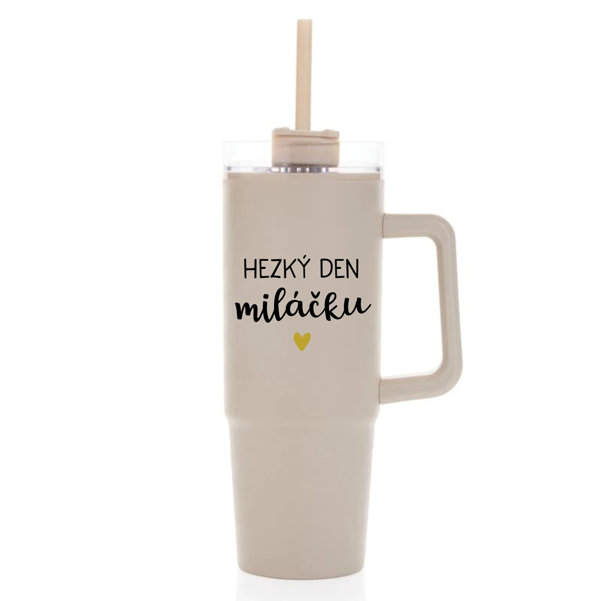 HEZKÝ DEN MILÁČKU - béžový cestovní termohrnek s průhledným víčkem 900 ml