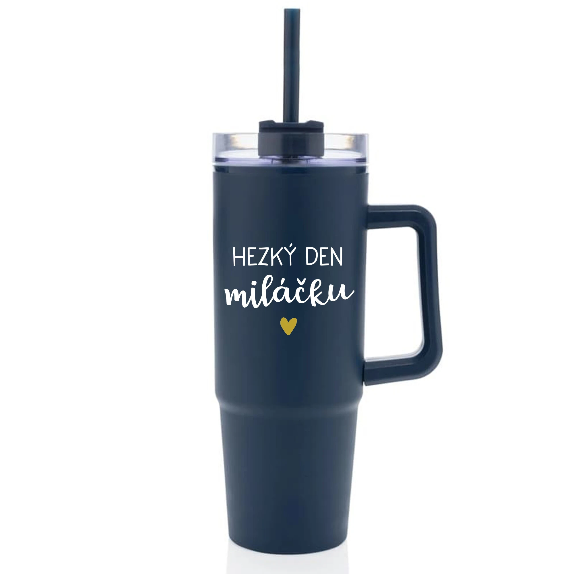 Hledáš ideální hrnek na cesty, do práce nebo na lenošení doma? Náš stylový termohrnek o objemu 900 ml s praktickým uchem a brčkem tě nadchne nejen velikostí, ale i milým potiskem „HEZKÝ DEN, MILÁČKU“, který ti každý den zlepší náladu.