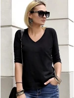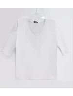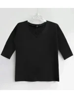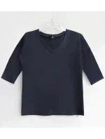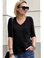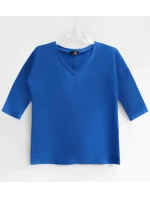 Hladká dámská halenka s 3/4 rukávy a výstřihem ve tvaru písmene "V".