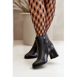 Dámské kotníkové boty vyrobené z eko kůže. Občas podpatek zajišťuje stabilitu a pohodlí při chůzi, zároveň přidává několik centimetrů výšky a zdůrazňuje postavu. Zapínání na zip zaručuje snadné obouvání a zouvání bot, což je zvláště praktické při každodenním používání. Vnitřek bot je zateplený příjemnou obuvnickou dekou, která chrání nohy před chladem, zajišťuje jim teplo a pohodlí i v nejchladnějších dnech. Při výběru velikosti se prosím řiďte tabulkou velikostí.