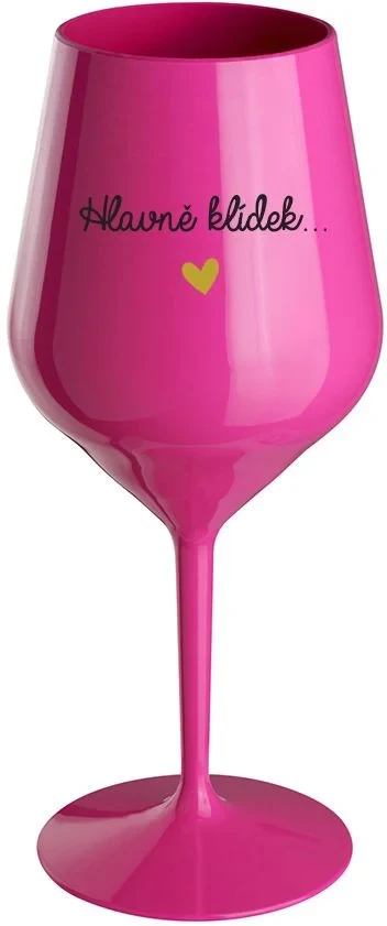 HLAVNĚ KLÍDEK... - růžová nerozbitná sklenice na víno 470 ml