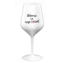 HLAVNE SA NEPOSRAŤ - biely nerozbitný pohár na víno 470 ml