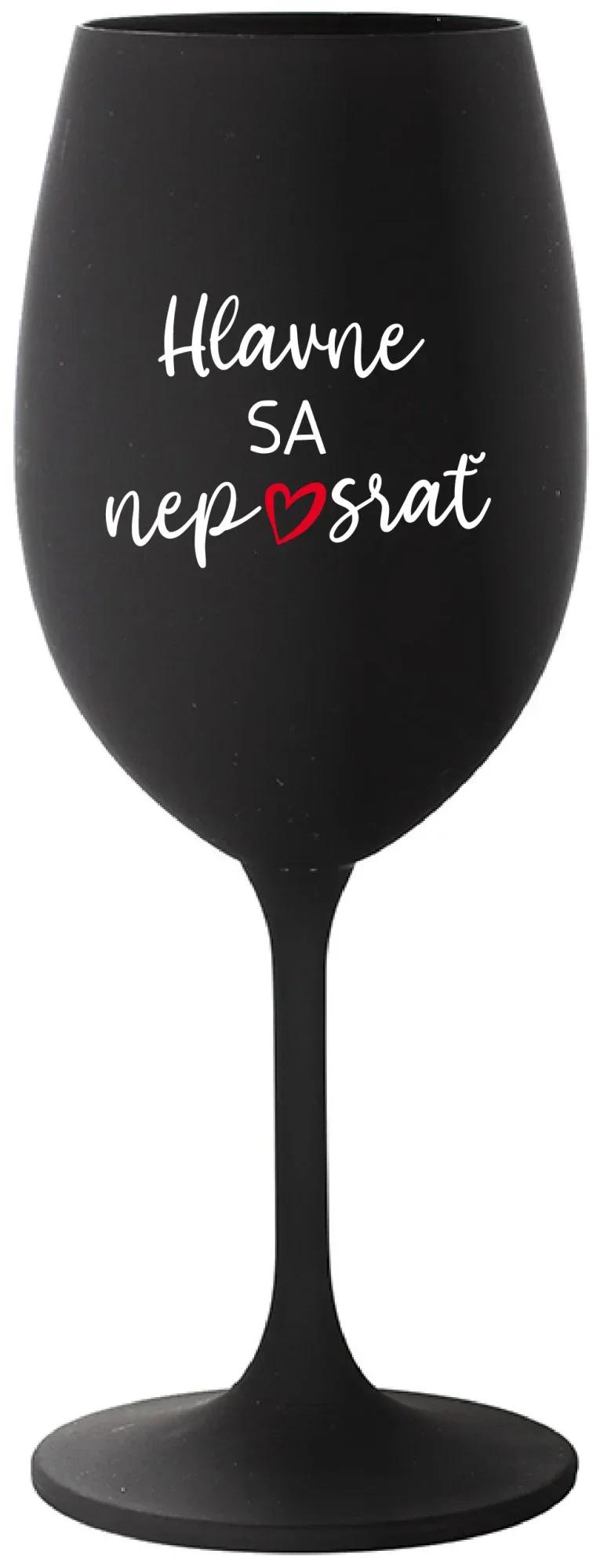 HLAVNE SA NEPOSRAŤ - čierny pohár na víno 350 ml