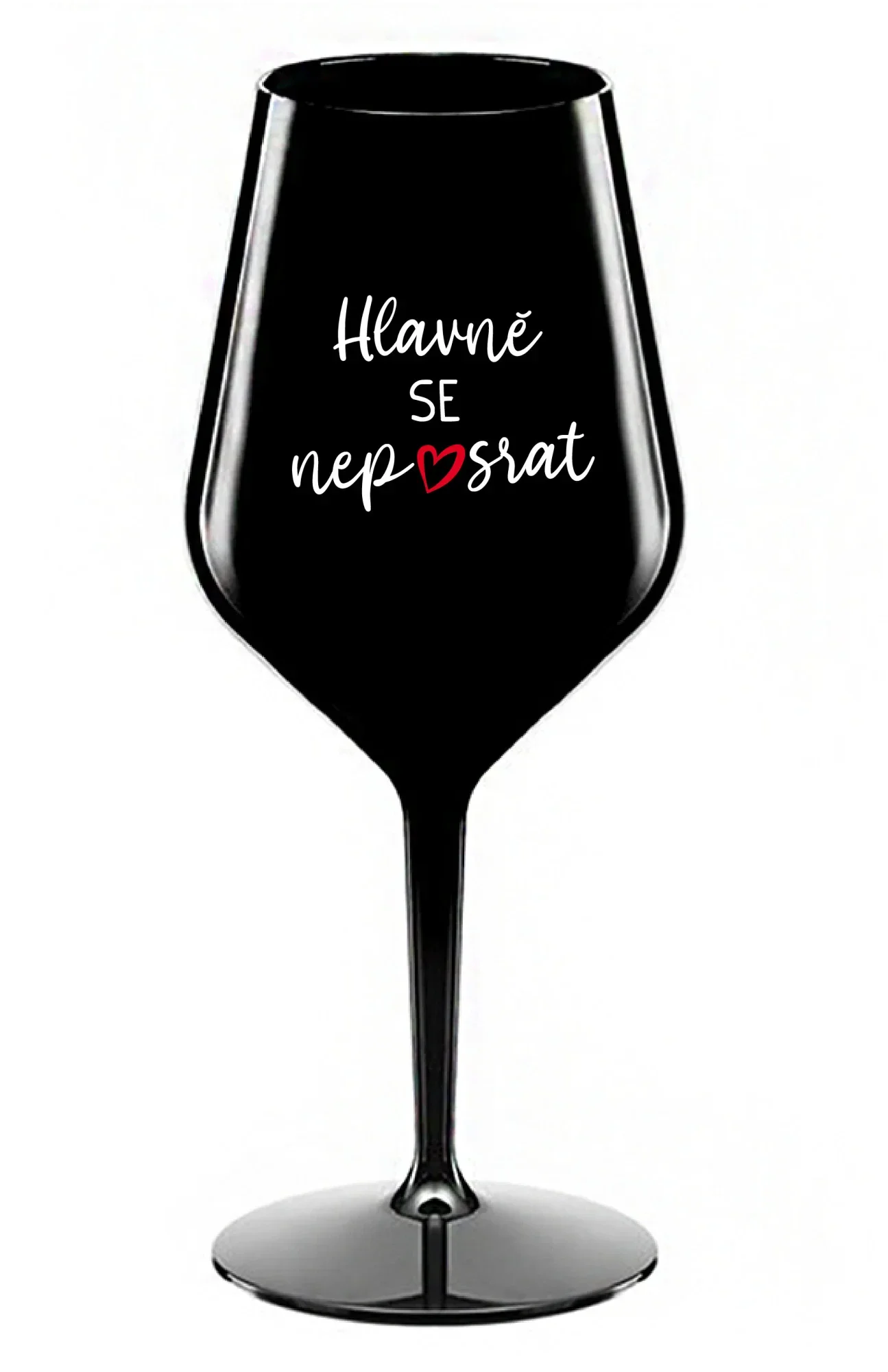 HLAVNĚ SE NEPOSRAT - černá nerozbitná sklenice na víno 470 ml