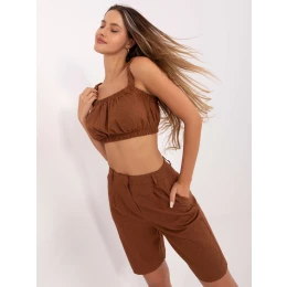Rozměry soupravy ve velikosti S: top - šířka v podpaží: 34 cm (na plocho), šířka v podpaží: 59 cm (po natažení), celková délka: 37 cm, šortky - šířka v pase: 35 cm, výška v pase - 34 cm, šířka v bocích - 55 cm, celková délka: 54 cm