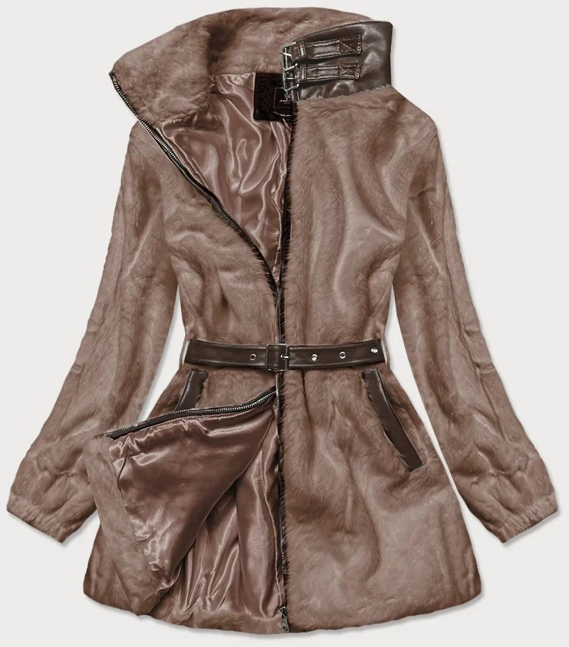 Hnědá kožešinová bunda se stojáčkem (GSQ2228)
