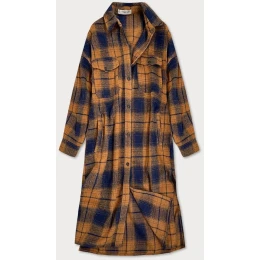 Hnědo-tmavě modrý dámský károvaný košilový kabát (8424)